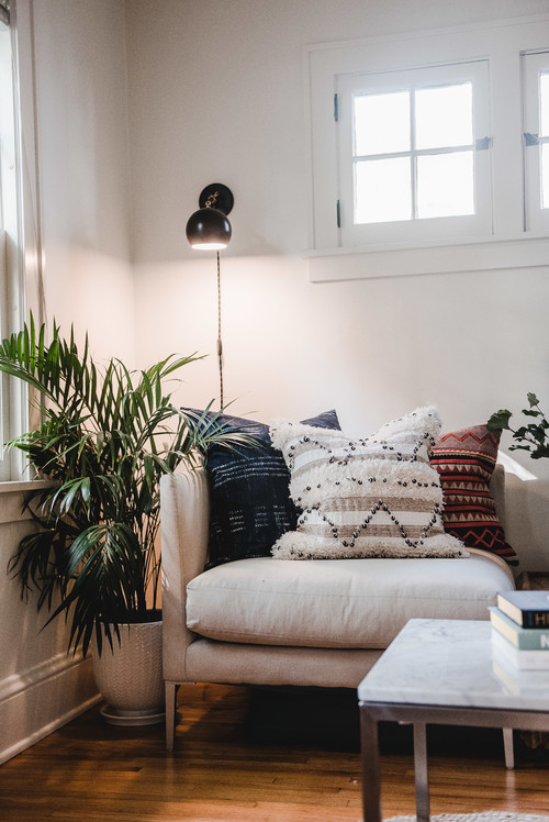 Decorative textiles such as pillows, throws, and tapestries are used to add color, texture, and pattern to Bohemian spaces. They can easily be swapped out to refresh the look of a room.