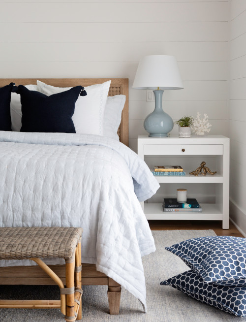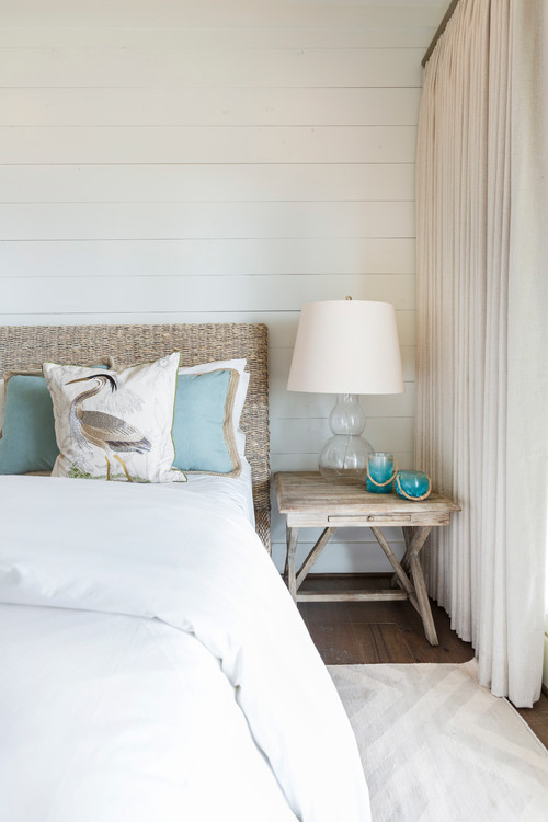 A bed with a wooden or wicker headboard can be a focal point in your coastal bedroom, adding character and a touch of the outdoors.