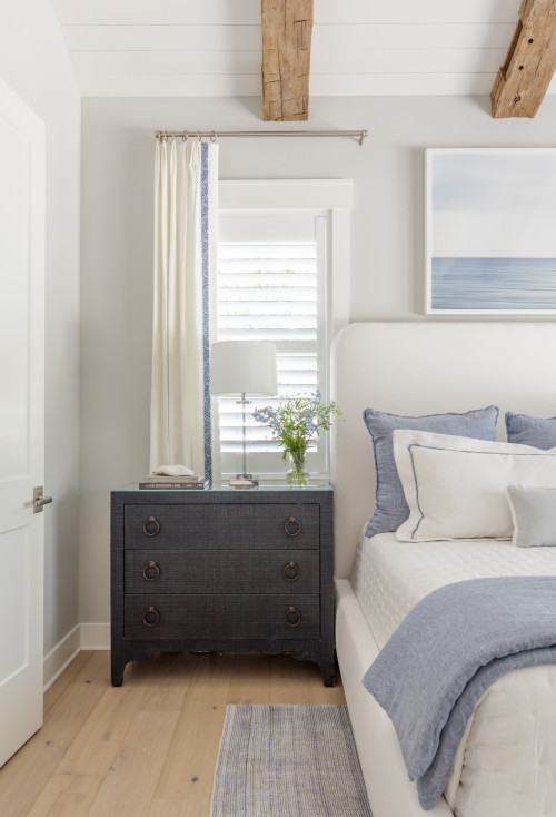Opt for storage solutions like chests or dressers made from reclaimed wood or whitewashed finishes to keep your belongings organized while maintaining the coastal theme.