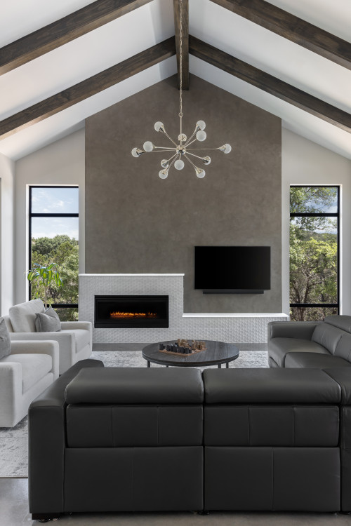 Arranging furniture to create conversation areas is crucial in a contemporary living room. This involves placing seating in a way that encourages interaction, typically in a circular or U-shaped configuration. The goal is to foster a sense of community and flow, making the space inviting and functional.