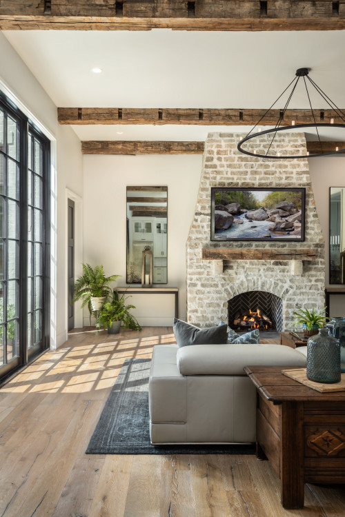 Light hardwood floors maximize brightness and spaciousness effectively. They work well in areas where dark ceiling beams might otherwise feel heavy.
