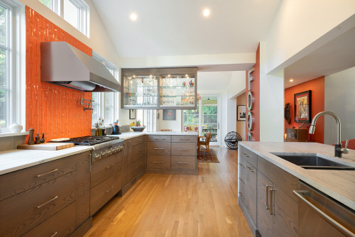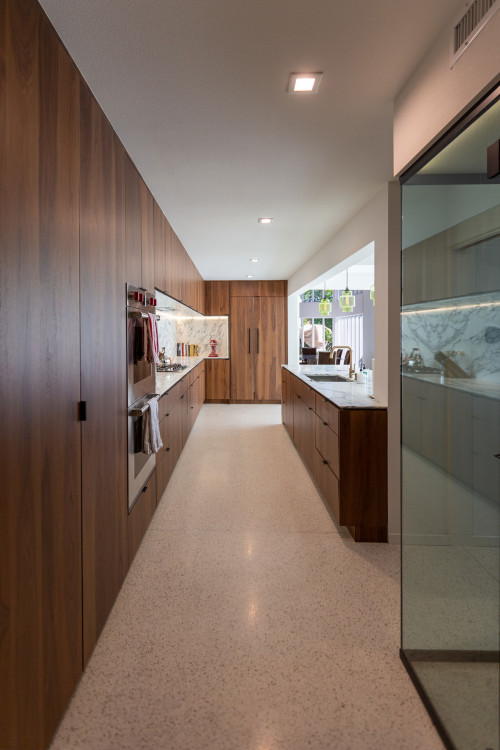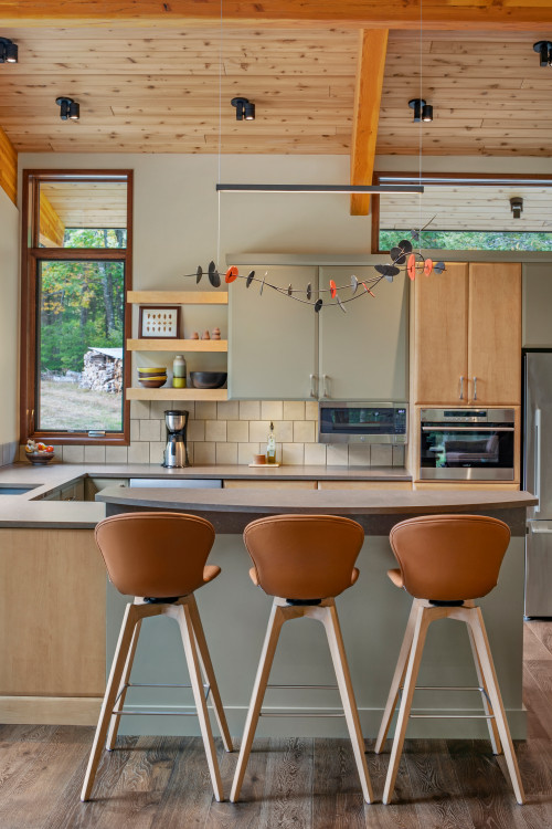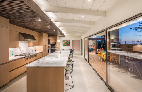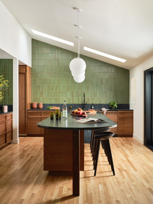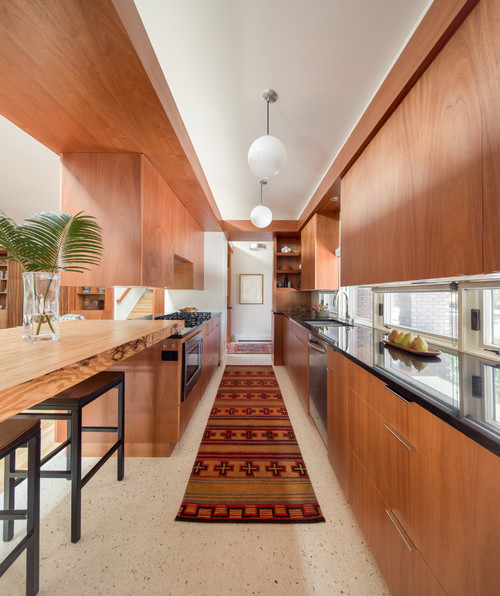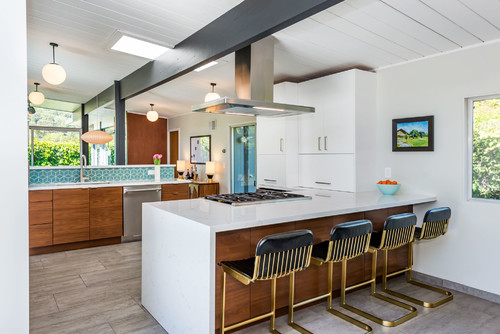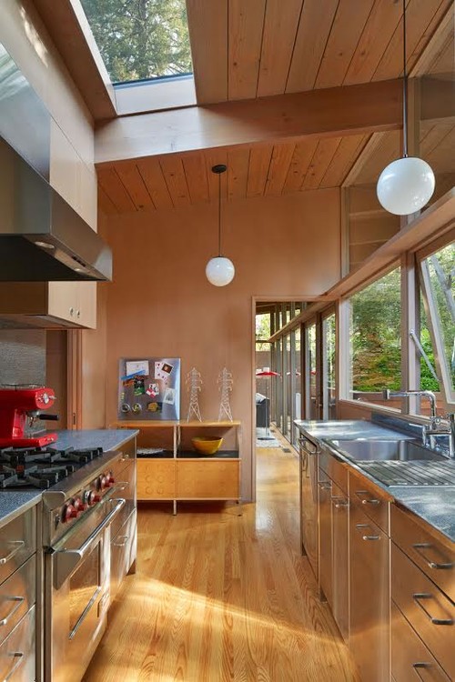- A Mid-century modern kitchen pairs function with streamlined form.
