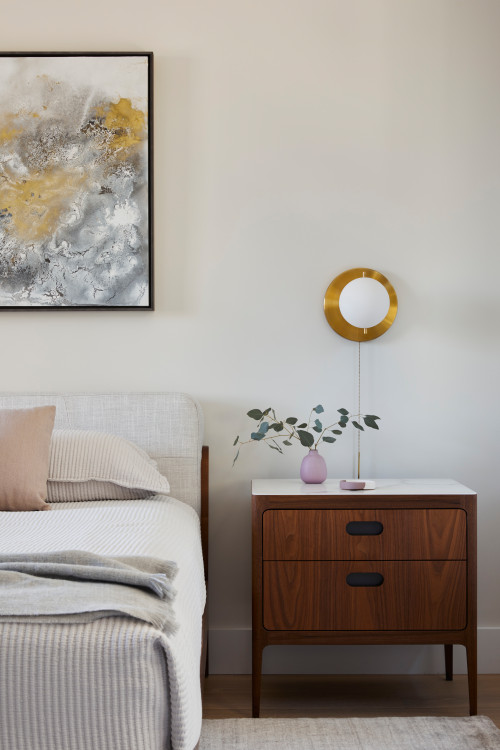 Nightstands should be simple and functional. Accent furniture, such as a minimalist chair or a small bench, can add character without cluttering the space.