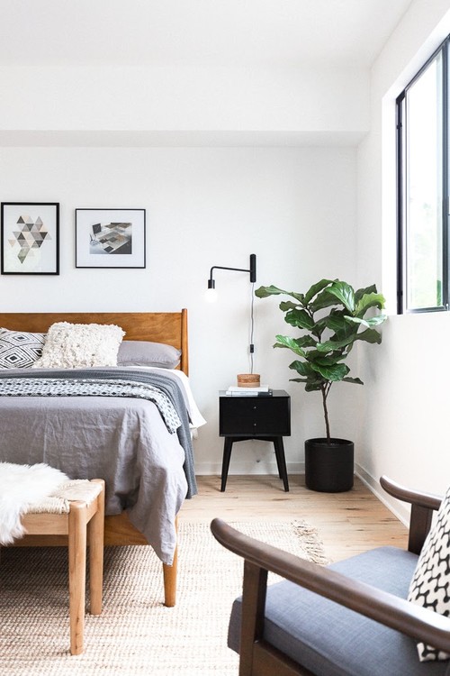 Incorporating plants and natural elements can add a touch of warmth and vitality to a Scandinavian bedroom. Choose low-maintenance plants like succulents or peace lilies that thrive in indoor conditions. Natural elements such as a vase with branches, a bowl of river rocks, or a display of seashells can also enhance the space, bringing in a sense of the outdoors.