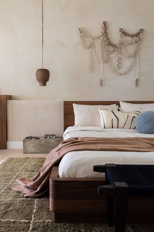 The bed frame is the centerpiece of any bedroom. In Scandinavian design, it’s about simplicity and clean lines. Popular materials include solid woods like oak and pine, often finished in a natural or whitewashed tone.