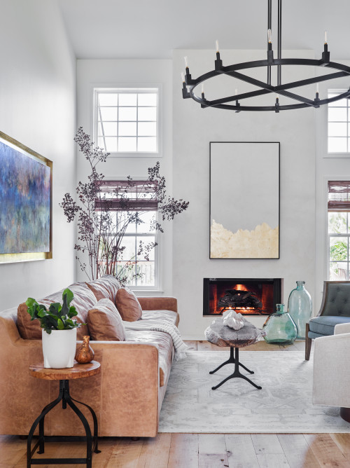 Artwork and gallery walls can add significant visual interest to your transitional living room. When selecting art, consider pieces that blend traditional and contemporary styles, such as abstract works with classic frames or modern prints in ornate frames.
